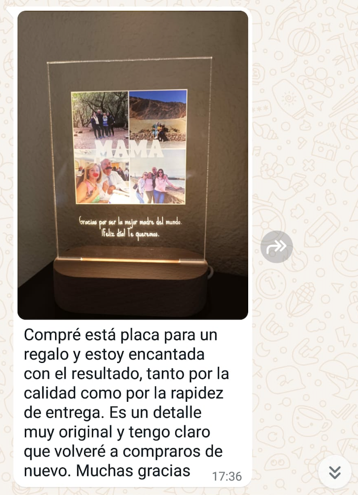 Dado que nuestras lámparas son personalizadas, no aceptamos devoluciones salvo en casos de defectos o errores en el producto. Si este es tu caso, contáctanos y estaremos encantados de ayudarte.