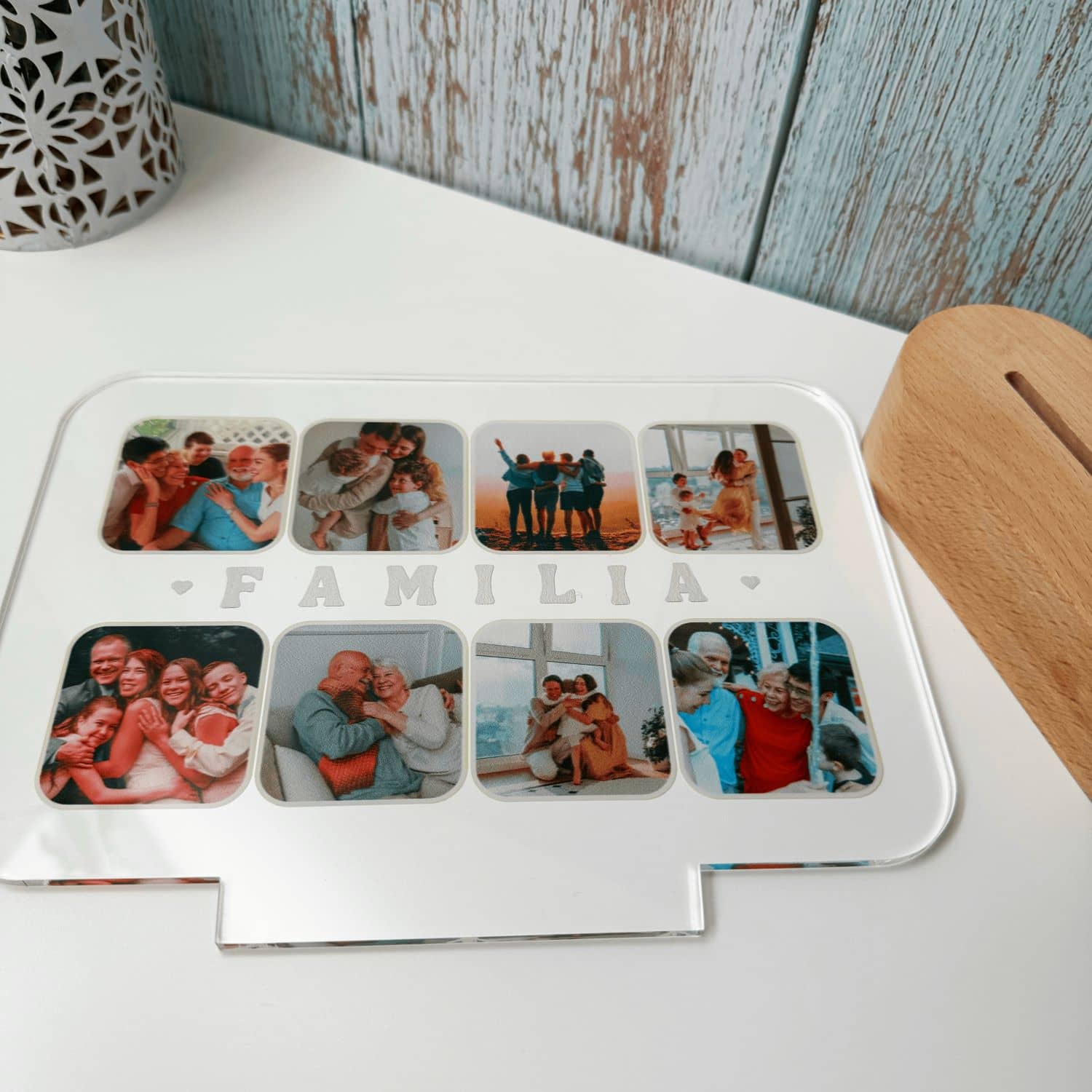 Transforma tus fotos familiares en una pieza de arte iluminada. Cada lámpara es única, reflejando tus momentos más preciados.